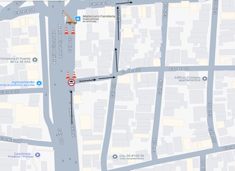 Cierres viales temporales bajo el puente de la Circunvalar con carrera 38 por obras