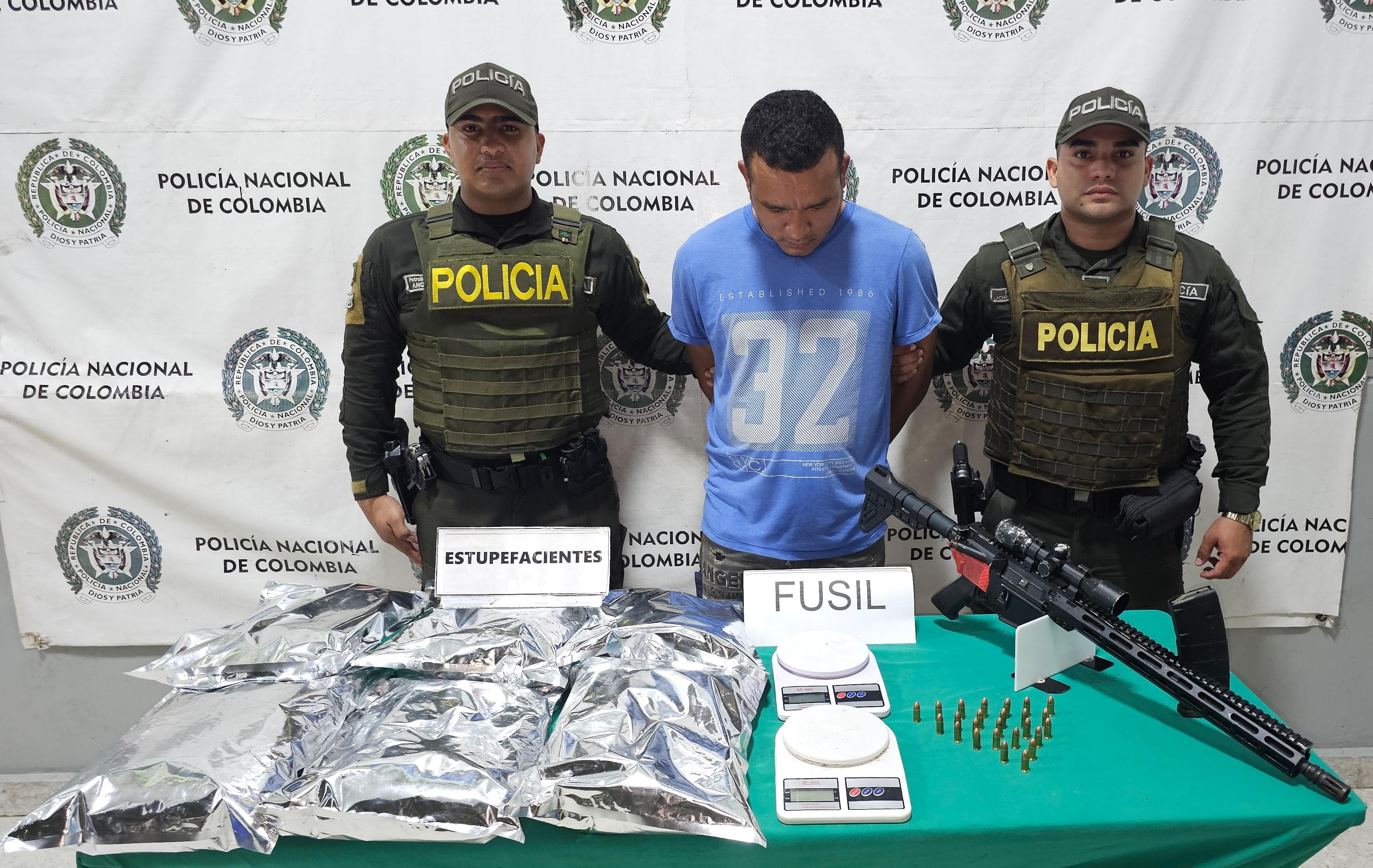 Detenido alias «El Negro Daniel», presunto integrante de «Los Costeños», con fusil y droga en Barranquilla