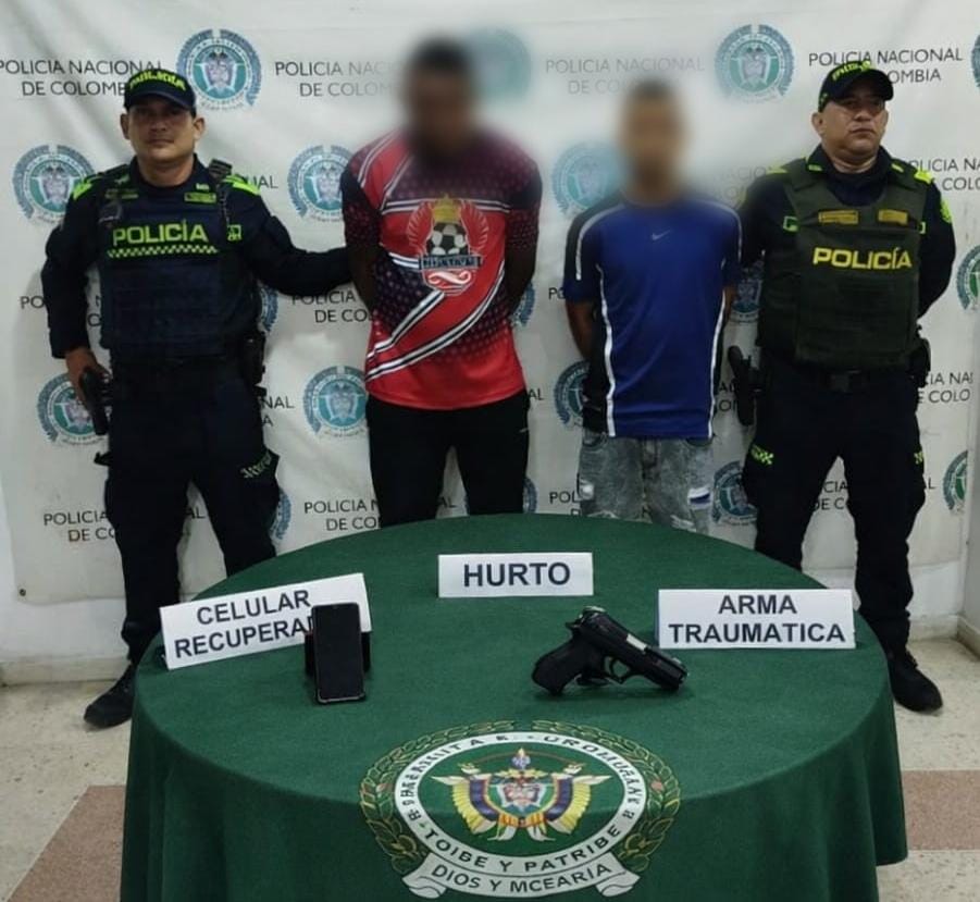 Según informaron las autoridades, los sujetos fueron sorprendidos minutos después de haber despojado a un ciudadano de su teléfono celular y otros elementos personales. Los presuntos responsables intentaban huir del lugar cuando fueron interceptados por los uniformados.