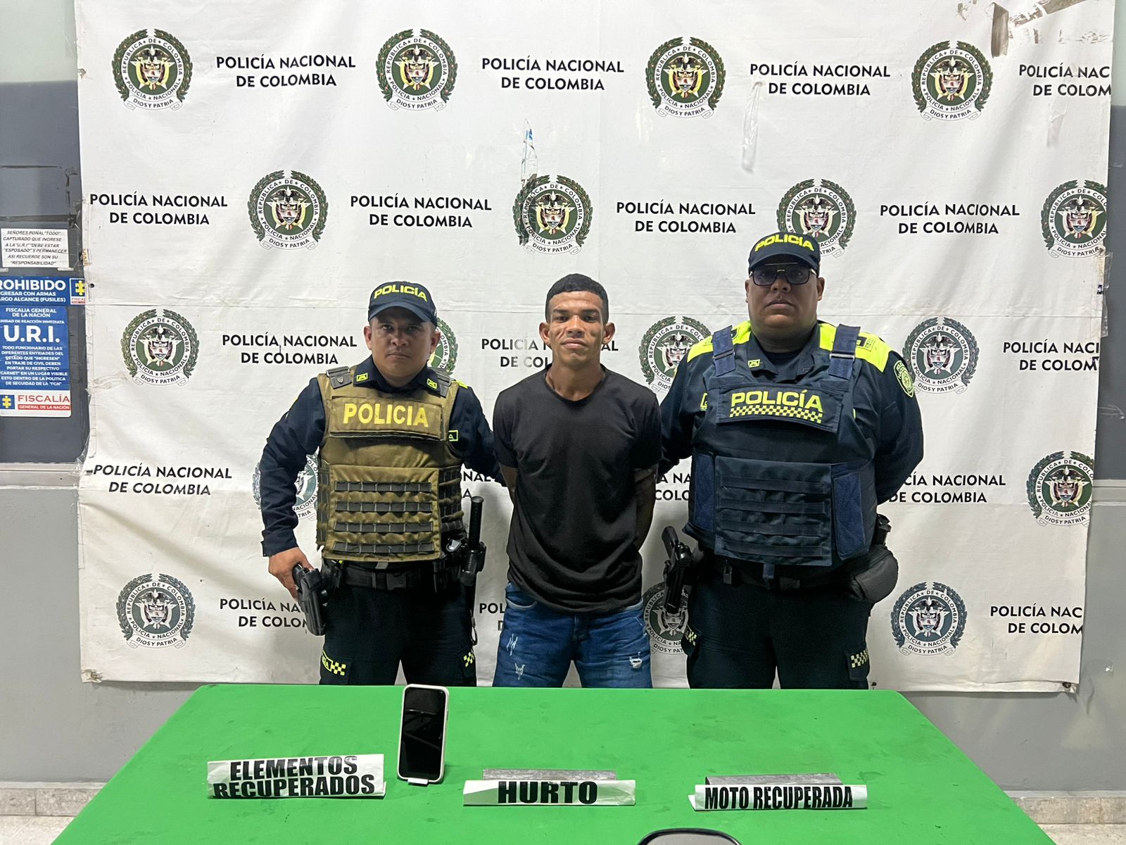 Gracias a la rápida reacción de una patrulla de vigilancia de la Estación de Policía San José, el presunto ladrón fue capturado y se recuperaron una motocicleta y un teléfono celular que habían sido robados.