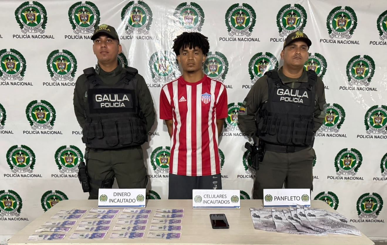 La Policía Nacional, a través del Grupo de Acción Unificada por la Libertad Personal (GAULA), logró la captura en flagrancia de un presunto extorsionista en el barrio Cruz de Mayo del municipio de Soledad. El individuo, que se identificaba como miembro del Grupo Delincuencial Común Organizado «Los Costeños», es señalado de intimidar a comerciantes de […]
