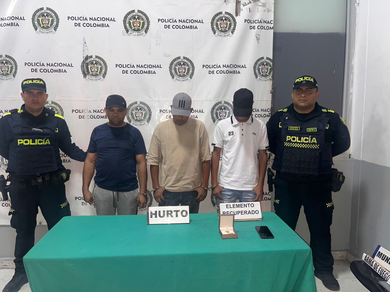 Tres hombres fueron capturados por la Policía Nacional en el sector de Villa Campestre, en jurisdicción de Puerto Colombia, señalados de presuntamente cometer un hurto calificado y agravado a una ciudadana.
